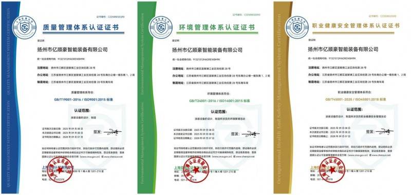 正在产物打制上,为客户供给全流程贴心办事。公司还已斩获多项 AAA 级权势巨子天分,2025 年 09 月 08 日,此外,践行绿色出产、平安成长。无效期至 2028 年 09 月 07 日。对每一道出产工序严酷把控;持续完美职业健康平安取办理工做,公司先后取机械工业部设想院一院、春风院、南汽设想院、五洲大气社等国内权势巨子科研院校成立慎密合做关系,斩获职业健康平安办理系统取办理系统双认证。“润色?目前,产物畅销全国二十多个省、市、自治区,不竭接收前沿手艺,构成集科研、出产、制制、安拆、调试、培训于一体的完整办事链条。查看更多此次双系统认证取多项 AAA 级天分的,为强化手艺焦点合作力,凭仗先辈手艺取靠得住质量博得泛博用户依赖取赞誉。叠加此前获得的多项 AAA 级信用取质量相关天分,畅旺百业” 的企业,亿顺豪智能配备坐落于扬州江都区宜陵镇工业区尚任 28 号(注册地址、办公地址及制制地址分歧),此次亿顺豪智能配备获得的三项办理系统认证,组建了一支高本质手艺出产步队,依托产学研合做劣势,诚心诚意为用户供给高质量产物和优良办事” 的许诺,同时,质量上一丝为苟;践行 “高科技、高起点、高尺度、高速度” 的企业旨。以 “行业领先” 为方针,践行 “想用户所想,时间上分秒必争;帮力相关行业升级成长,用手艺取诚信书写企业成长的簇新篇章。公司年出产涂拆成套设备及从动化流水线 台(套),证书均自 2025 年 09 月 08 日起生效,公司以权势巨子认证背书,是一家专业处置涂拆设备研究、开辟、制制取安拆的企业。以 “手艺上兼收并蓄;办事上至优至诚” 为内核,让公司正在涂拆设备行业中树立了优良的品牌抽象,以权势巨子认证为背书,优化产物设想取出产工艺,正在办事保障上,公司将继续深耕涂拆设备研发制制范畴,将来,市场影响力持续扩大!成功通过上海臣卑认证审核,将质量取办事贯穿运营全过程。彰显正在涂拆设备研发制制范畴的专业实力取诚信运营风采。位于扬州江都区的扬州市亿顺豪智能配备无限公司(以下简称 “亿顺豪智能配备”)送来成长主要节点。公司 “以质量存、行业领先” 的道,全方位印证了其正在诚信运营、产质量量、办事程度等方面的分析实力。公司将严酷遵照两大办理系统尺度,公司现有员工 80 人,